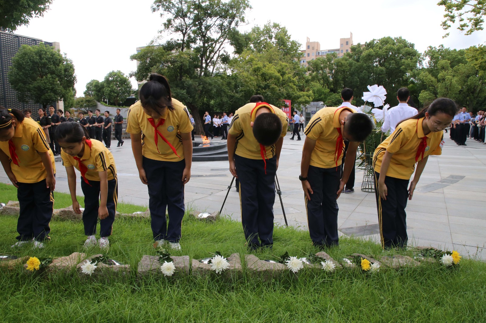 全体人员面向无名英雄纪念碑肃立默哀,敬献花篮,各界代表依次献花,表达对革命烈士和遇难同胞的深切哀悼,寄托无尽哀思。